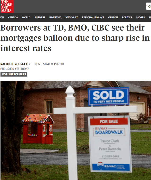 加拿大三大銀行蒙特利爾銀行(BMO)、多倫多道明銀行(TD)和加拿大帝國商業銀行(CIBC) 今年 9 月首次透露,大約 20% 的住宅抵押貸款借款人進入負攤銷(相當於近 1300 億加元的貸款)。這些房主的房貸餘額不斷增長,因為這些房主每月房貸付款再也無法覆蓋每月所欠的利息。